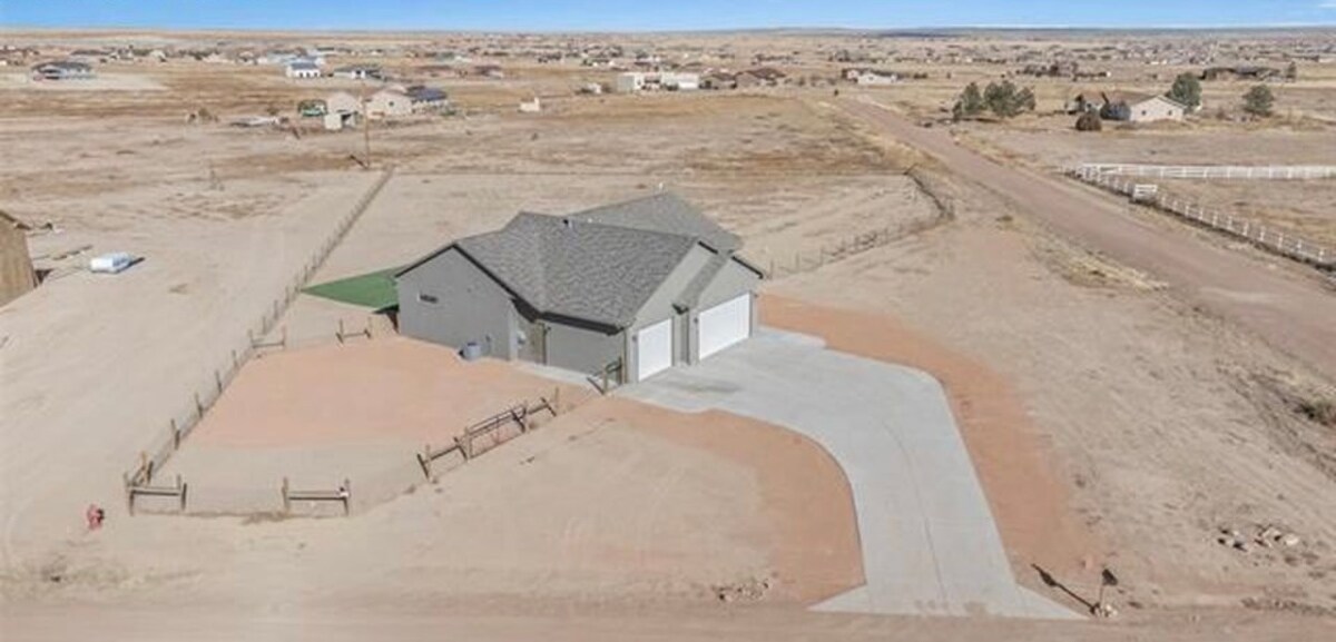 Enjoy this luxurious private Pueblo ranch house which sits in the center of 60 acres and is a perfect escape for friends or families seeking a serene getaway. 20 minutes east of Pueblo. Convenience store 5 minutes away. Great Sand Dunes National Park, Pikes Peak, Garden of the Gods all manageable by day trips. Stroll historic downtown of Pueblo. Charming 3 bedroom, (One of the rooms has an air mattress.) 2.5 bathrooms, has 2 living rooms, jet tub, patios, Smart TV's, high speed Internet.