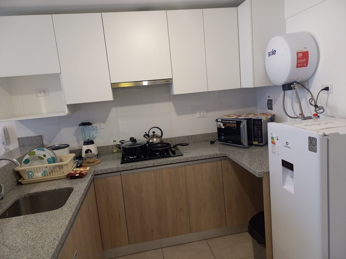 Esta minuciosamente pensada para hacer tu estadia inolvidable comoda y placentera. Escapate de la rutina DIsfruta del mar,aire libre y actividades Sala equipada con tv , WI-FI y repetidor Comedor completo Cocina equipada. El dormitorio principal con cama de 2 plazas,2 veladores; tiene baño privado y closet amplio Segundo dormitorio cama con closet y baño Areas de recreacion : Piscina niños Piscina adultos Gimnasio con sauna Juegos de niños Juegos de mesa Area de parrilla, Area de lavanderia