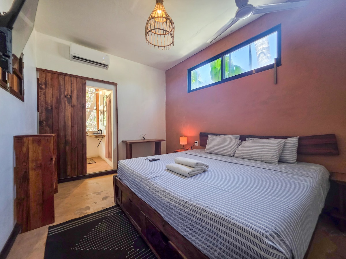 Habitación sencilla y práctica en Arena Negra, ideal para descansar después de un día en la playa. Cuenta con cama cómoda, ventilador, aire acondicionado, baño privado y desconectado de las multitudes de la comunidad. Perfecta para quienes buscan algo básico, limpio y a buen precio.
