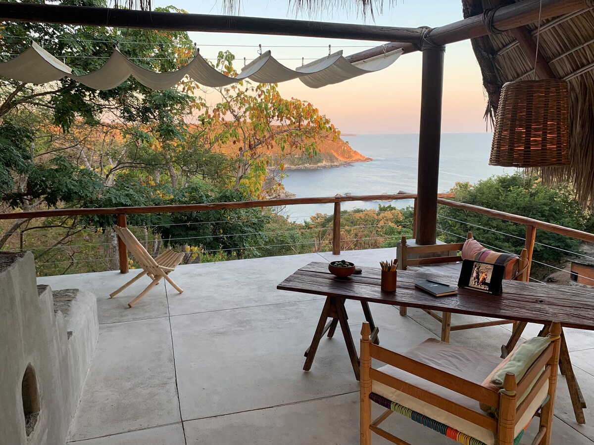 Disfruta de una ubicación privilegiada, a solo 5 minutos caminando de la playa y cerca de los mejores destinos de la costa oaxaqueña, como Puerto Ángel, Mazunte y Zipolite. Este hermoso lugar te espera, a solo 50 minutos del Aeropuerto de Huatulco. Ofrece: · Increíble tranquilidad y relajación. · Privacidad y comodidad. · Increíbles vistas al mar. · Conexión con la naturaleza. · Avistamiento de ballenas en temporada de invierno. · Playa casi virgen por un camino de cinco minutos (aventura).