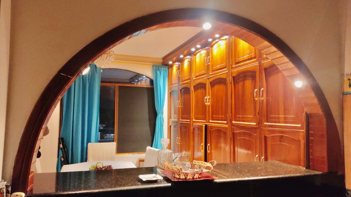 Nuestro departamento es excelente para familias, grupo de amigos o parejas, equipado en cocina, sala, comedor, baño con agua caliente y aire acondicionado en ambos dormitorios, está ubicado estrategicamente a 2 minutos del centro, puedes ir a pie a restaurantes, tiendas, bares, discotecas, etc. Parte de nuestra familia se dedica al turismo por lo que podemos recomendarte los lugares que puedes visitar, además ofrecemos servicios de transporte para los recorridos más largos.