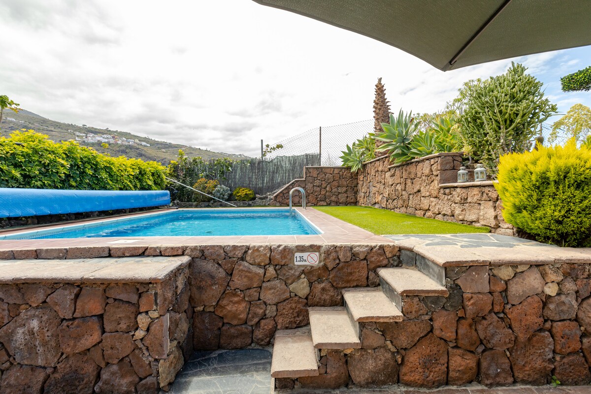 3-bedroom villa with a private pool, spacious living area, and breathtaking views from every window. Complete privacy — the villa is not visible to neighbors, so you can truly relax. Absolute silence, with no city or highway noise, yet the Puerto de la Cruz promenade is only 10 minutes away. The pool is heated year-round by solar panels. For those who prefer extra warmth, optional additional heating up to 26°C is available for €200 per week. Netflix, fast Wi-Fi , and a premium massage chair.