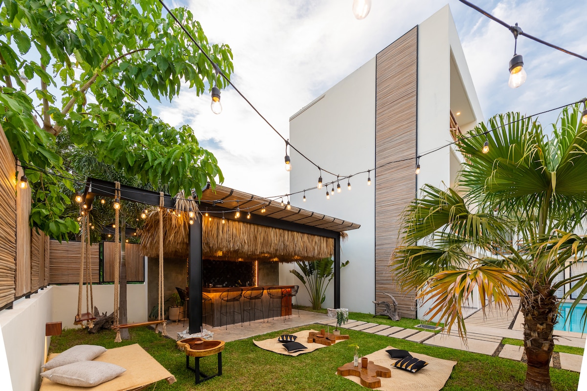 Punta Mayia es un conjunto de apartamentos boutique con un ambiente único y relajante. Situado a solo 3 minutos a pie de la playa La Punta Zicatela, este alojamiento ofrece una ubicación privilegiada para disfrutar del mar y la vibrante vida local. Los apartamentos están equipados con cocina americana al aire libre, baño privado y acceso a una terraza central con piscina, ofreciendo un espacio ideal para relajarse después de un día explorando Puerto Escondido.