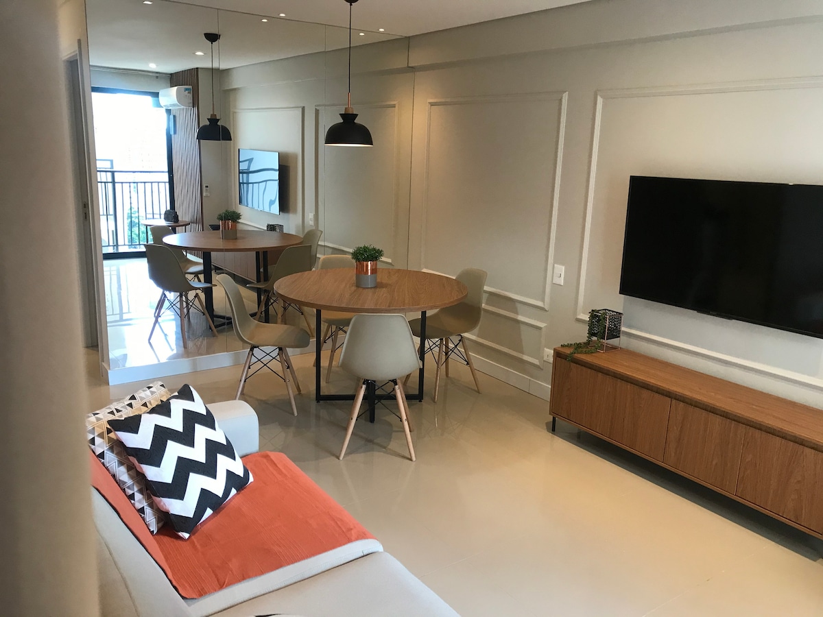 ¡Bienvenido a nuestro apartamento en el centro de Foz! Ubicado en uno de los pocos edificios con lavandería, gimnasio, estacionamiento gratuito y cubierto. El edificio en sí es moderno con seguridad/portería las 24 horas y sala de coworking disponible. Dentro de la unidad, encontrarás comodidad y limpieza. Dos baños, una hermosa vista, 1 cama queen-size y 1 cómodo sofá cama, la cocina está totalmente equipada para que pueda preparar comidas, a solo unos pasos de los mejores restaurantes de la ciudad.
