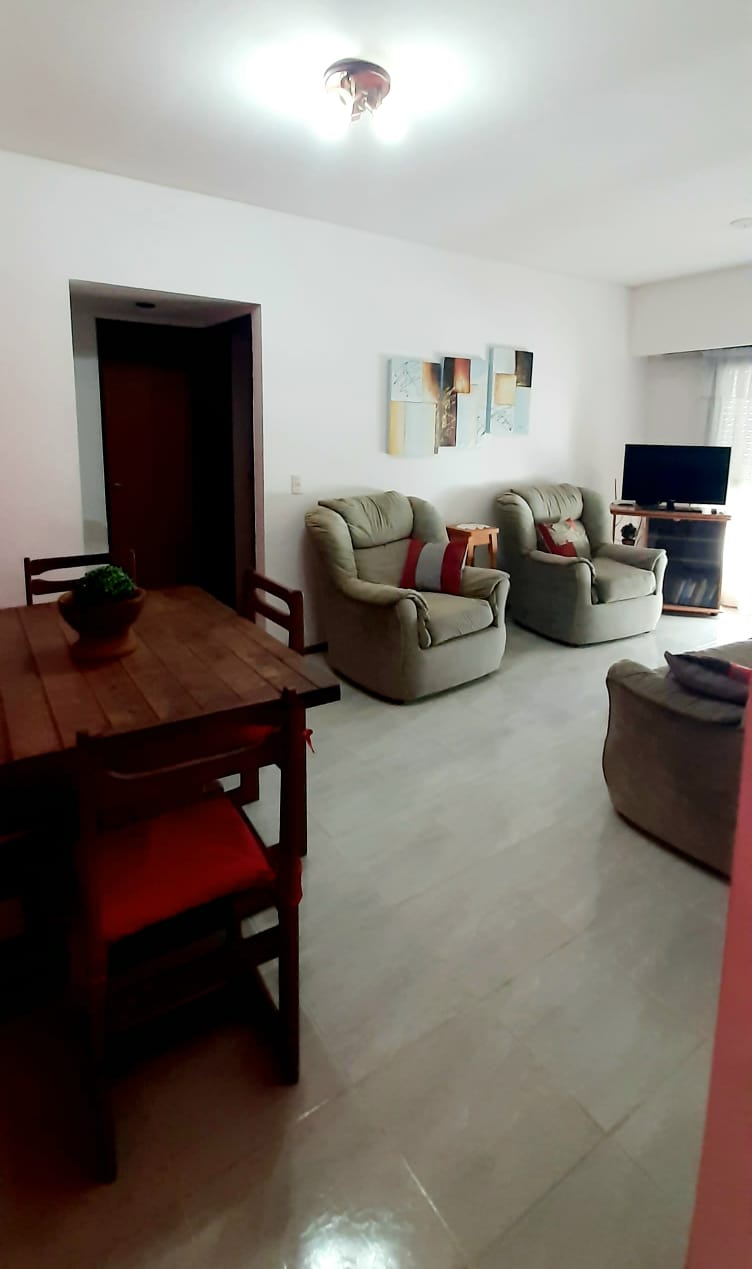 Departamento amoblado, muy luminoso y tranquilo, cuenta con patio y parrilla, todos los servicios incluidos (wifi, tv). Un dormitorio con cama matrimonial, comedor-cocina, sillón cama para 2 personas. Cuenta con electrodomésticos funcionales. Incluye blanquería (sábanas, toallas y toallones). Aceptamos mascotas medianas y pequeñas. Estacionamiento privado. Incluye vajilla completa para 4 personas.