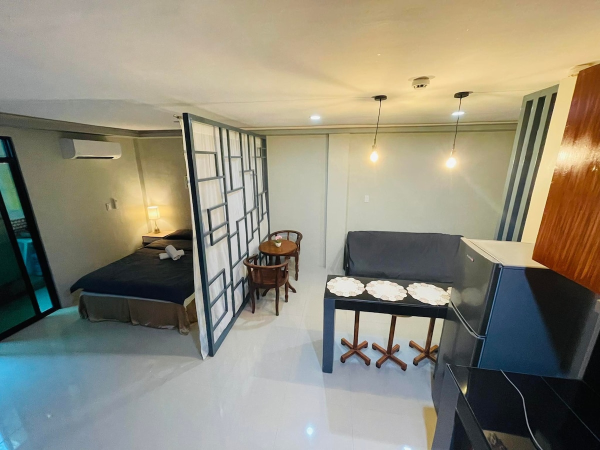 Estudio con energía solar 24/7. 2-5 personas/unidad. Con patio y zona de parrilla; estacionamiento propio; 1 cama queen, 1 sofá cama doble, 1 cama individual extraíble. Zonas accesibles: - A poca distancia a pie de las mini-torías. -5 minutos en coche al centro de la ciudad (mercado húmedo, centro comercial NCC, cadenas de comida rápida, bancos, cambio de dinero, iglesia) - A 1 minuto del cementerio de la ciudad. - A 3 minutos en auto del hospital más cercano. A 4 minutos en auto de las escuelas más cercanas. A 6 minutos en auto del centro comercial SM. - A 9 minutos en auto de la playa de Pristin. - A 13 minutos en auto del centro comercial Robinsons.
