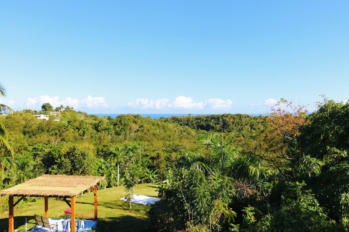 ¡Te desafío a encontrar una mejor vista de la costa este de Puerto Rico! Ven a relajarte en esta escapada única y tranquila. Disfruta de una de las vistas más hermosas que jamás hayas visto. Fácil acceso a la playa a menos de 10 minutos, cerca de los ríos cristalinos de la selva tropical y majestuosas cascadas. (10 a 15 minutos) Cocina completa, ducha a ras de suelo, cama tamaño king, televisor roku de 42 pulgadas, Split-unit A.C. Estacionamiento privado.