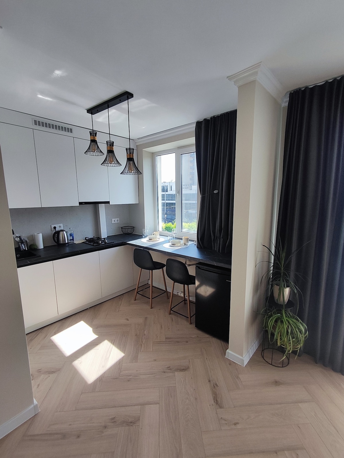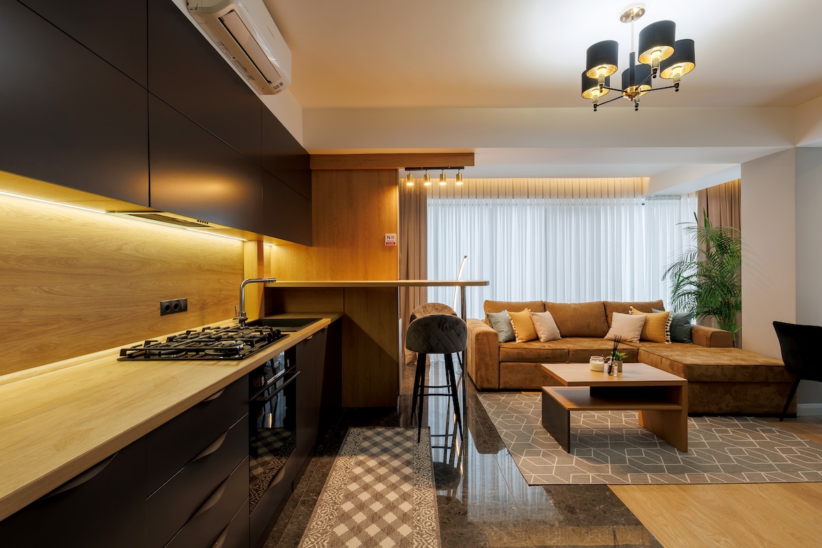 Relaxează-te într-un apartament elegant în inima Chișinăului, cu finisaje din marmură și lemn natural. Te vei bucura de o saltea premium Vi-Spring Bedstead, o cadă spațioasă și un balcon cu șemineu decorativ. Apartamentul are perdele cu telecomandă și espressor cu cafea pe boabe Blocul beneficiază de recepție și pază 24/24, oferindu-ți un plus de siguranță, confort și liniște pe durata întregii șederi.