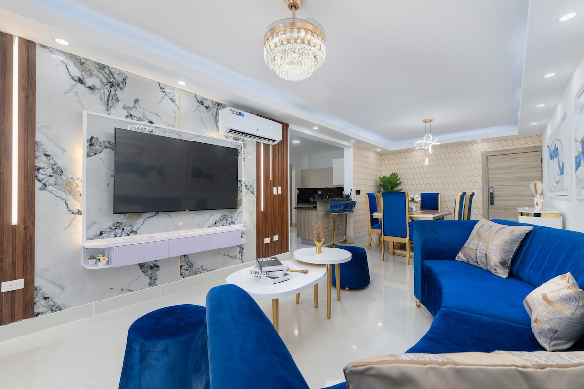 Nuevo y moderno apt, espacio cómodo y bien iluminado Cocina bien equipada y un baño limpio y espacioso, Parqueo privado y seguro con seguridad 24/7. , localizado a 10 min del Aeropuerto, centro de ciudad ect perfecto para disfrutar de un espacio comodo y tranquilo con toda su familia equipado con 3 dormitorios con tv wifi y aire acondicionado, Tenemos salon de eventos privados, piscina, villar, gimnasio, area de BBQ, area de juego para niños, cancha de basketball, wifi.