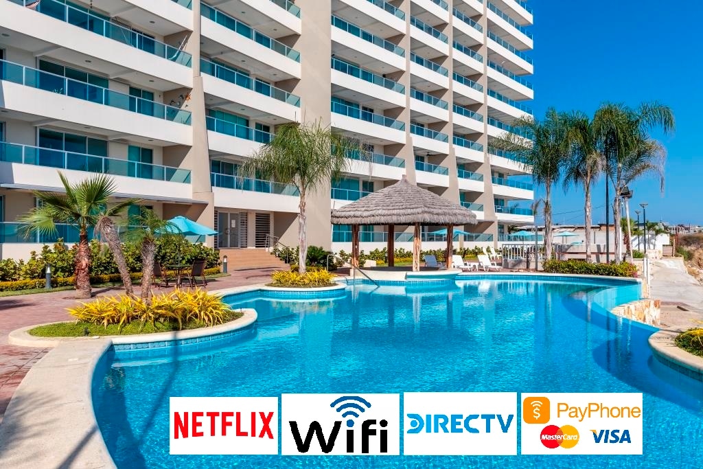 Crea recuerdos inolvidables, únicos y familiares. Acogedor y seguro departamento recién remodelado, en 5to. piso, con hermosa vista al mar y al área de piscina, y con acceso al club de playa. El departamento cuenta con 2 dormitorios, 2 baños completos, sofá cama, parqueo privado, wifi, 2 TV de pantalla plana con streaming, lavadora-secadora, acondicionadores de aire, ascensores. En las zonas compartidas una hermosa área de piscina, jacuzzi, parrilla, gimnasio, área social con billar y ping pong.