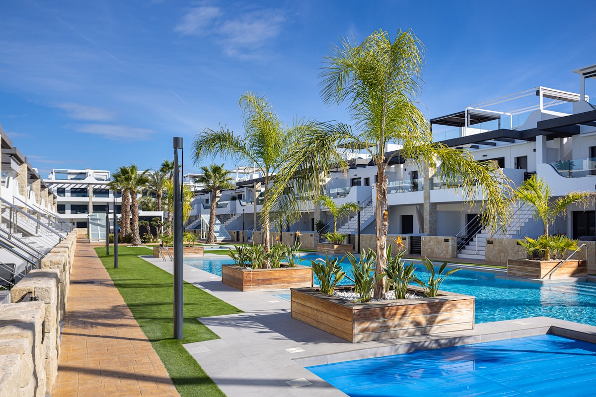 Located a stone throw away from Playa Punta Prima and Cala La Mosca, this luxurious 3-bedroom penthouse epitomizes contemporary elegance. This residence boasts modern interiors with high-quality finishes, along with spacious bedrooms, an open-plan living area with stunning sea views, and a state-of-the-art kitchen, creating an ambiance of comfort and sophistication. The roof terrace offers a private jacuzzi, barbecue area, and a stylish lounge space.