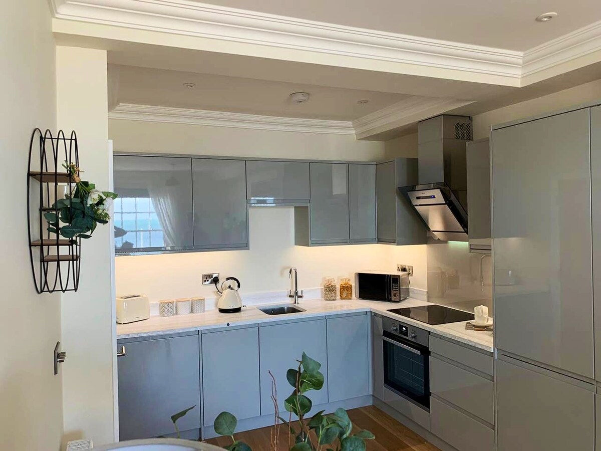 Un apartamento a estrenar a solo 50 pasos de la playa con aparcamiento gratuito en el corazón de Weymouth, directamente en la explanada, con vistas panorámicas al mar de la galardonada playa. Bien equipado y ubicado entre tiendas y restaurantes. A pocos minutos a pie de bares, el puerto y la estación de tren. Cocina totalmente equipada con nevera con congelador de tamaño familiar, horno, microondas, tostadora, hervidor de agua, cubiertos, vajilla, lavavajillas, lavadora, televisores de pantalla plana, wifi, toallas de mano, baño y playa incluidas.
