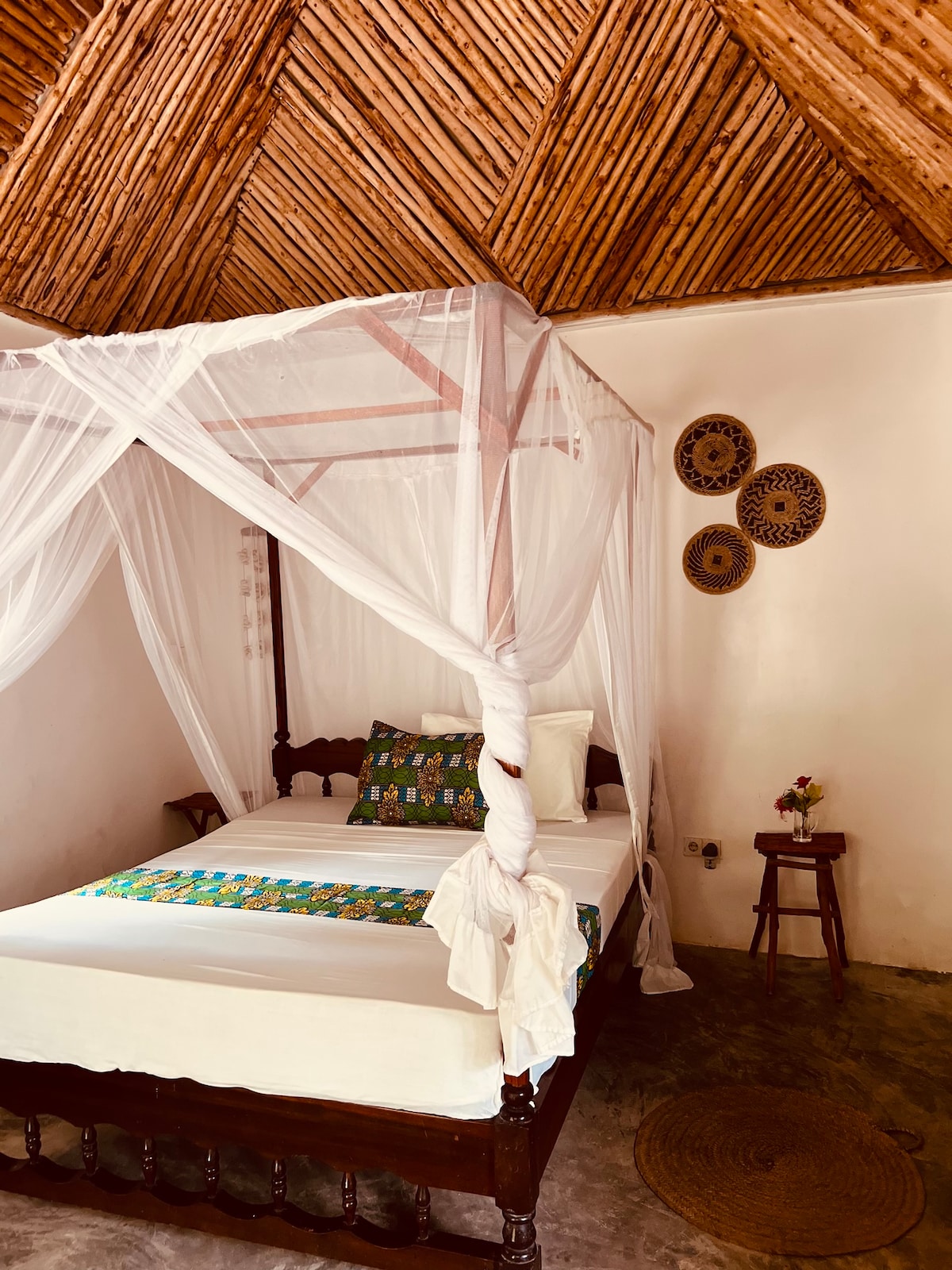 The "Bweni beach lodge" is a quiet, beautiful lodge on the beach. Our bungalow sits straight on the beach, 10 m from the sea, with private terrace and ensuite bathroom. The two king-size beds have mosquito net. There is a fan in the room. Breakfast with tea and coffee is included and every day we prepare lunch and dinner based on what is available in the village and what the fishermen bring us. We have 1 cat and 2 dogs- all very loveable. There is electricity and clean water.