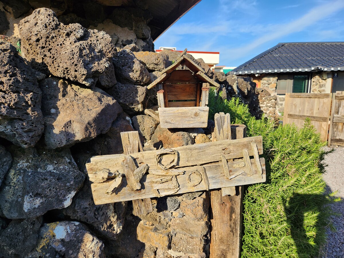 Se encuentra ubicado en el este de la isla de Jeju. Es Haengwon-ri, cerca de la famosa playa Woljeong. El exterior está rodeado de paredes de piedra. Es un alojamiento cómodo y cómodo con comodidad moderna. Es tranquilo fuera de la ventana y se puede ver el campo de la isla de Jeju. Con la naturaleza y tranquilidad únicas de la isla de Jeju Es el alojamiento ideal para relajarse solo con amigos y amantes. Hay una pequeña casa y una casa grande La casa que estás viendo es una «casa pequeña».