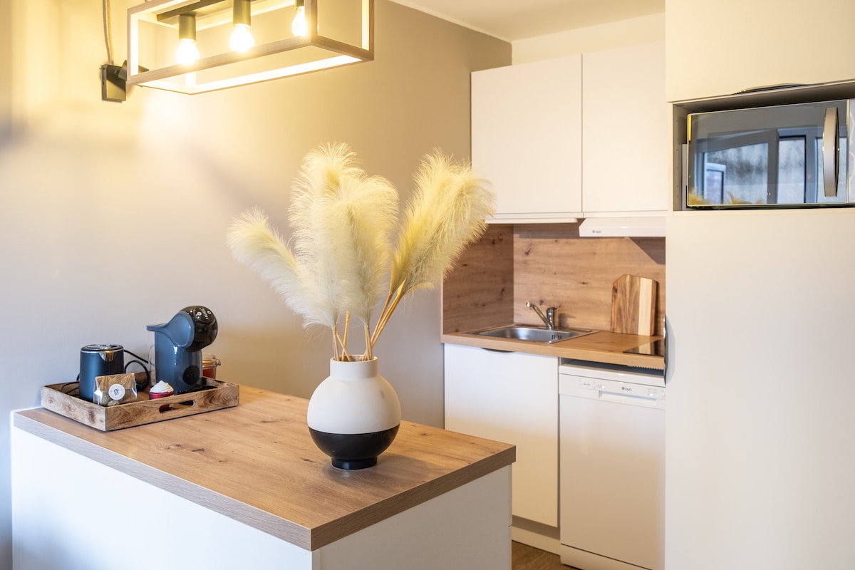 Nous serons ravis de vous accueillir dans notre T2. Il est calme, proche de l'intermarché, des restaurants, du bowling, des services (laverie, pharmacie, maison de santé), du parc de jeux pour enfants, de la forêt et à 300 m de la station de skis. dès les vacances de Noël, une navette gratuite vous conduira sur les pistes. Notre appartement comporte 2 entrées au choix, côté rue avec un demi-étage à franchir ou côté terrasse sans escalier. L'accès est compliqué pour les PMR.