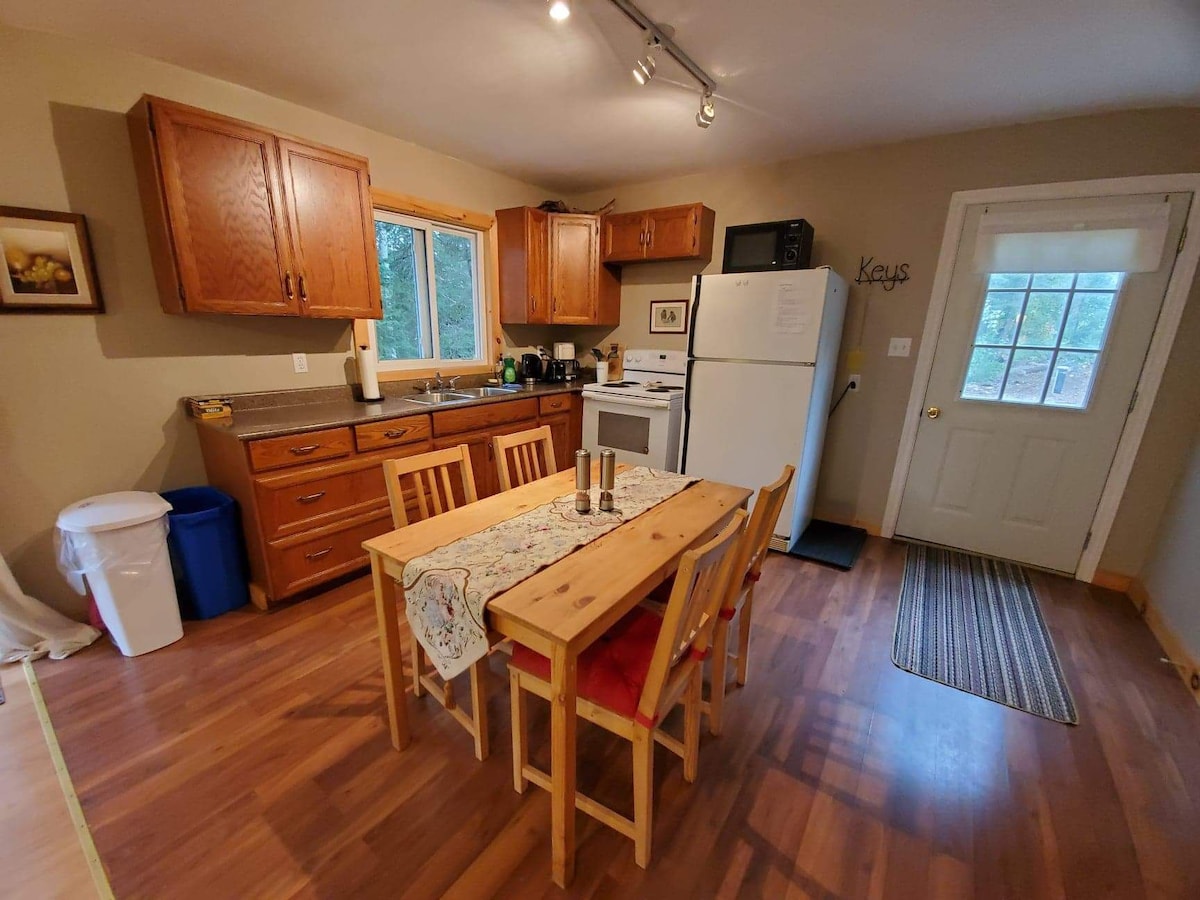 Nuestra pequeña casa de campo se encuentra en pinos con vistas al hermoso lago Kamaniskeg. Estamos cerca de Algonquin Park. Las renovaciones recientes incluyen un espacio decorado con buen gusto con la sensación de una acogedora cabaña canadiense. Las camas son excelentes. Podés disfrutar de la vista y el ambiente sentado en el porche con mosquitero con vistas espectaculares o sentarte junto al lago en el patio. La cabaña tiene una cocina totalmente equipada, ropa de cama y baño. Televisión por satélite.