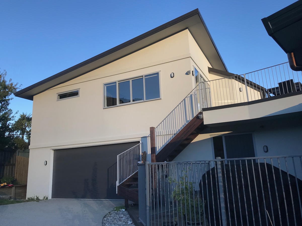 Keep it simple at this peaceful yet centrally located place. You will have panoramic views of the mountains and lake, while still having easy access to Queenstown’s bars, restaurants, shops, and activities. Free parking is available on a quiet culdesac. Central Queenstown is a 30-40 min walk (steeply downhill). The apartment is on the lower level of our property, and has great WiFi for working. The separate entrance and outdoor balcony area make it perfect for couples wanting privacy.