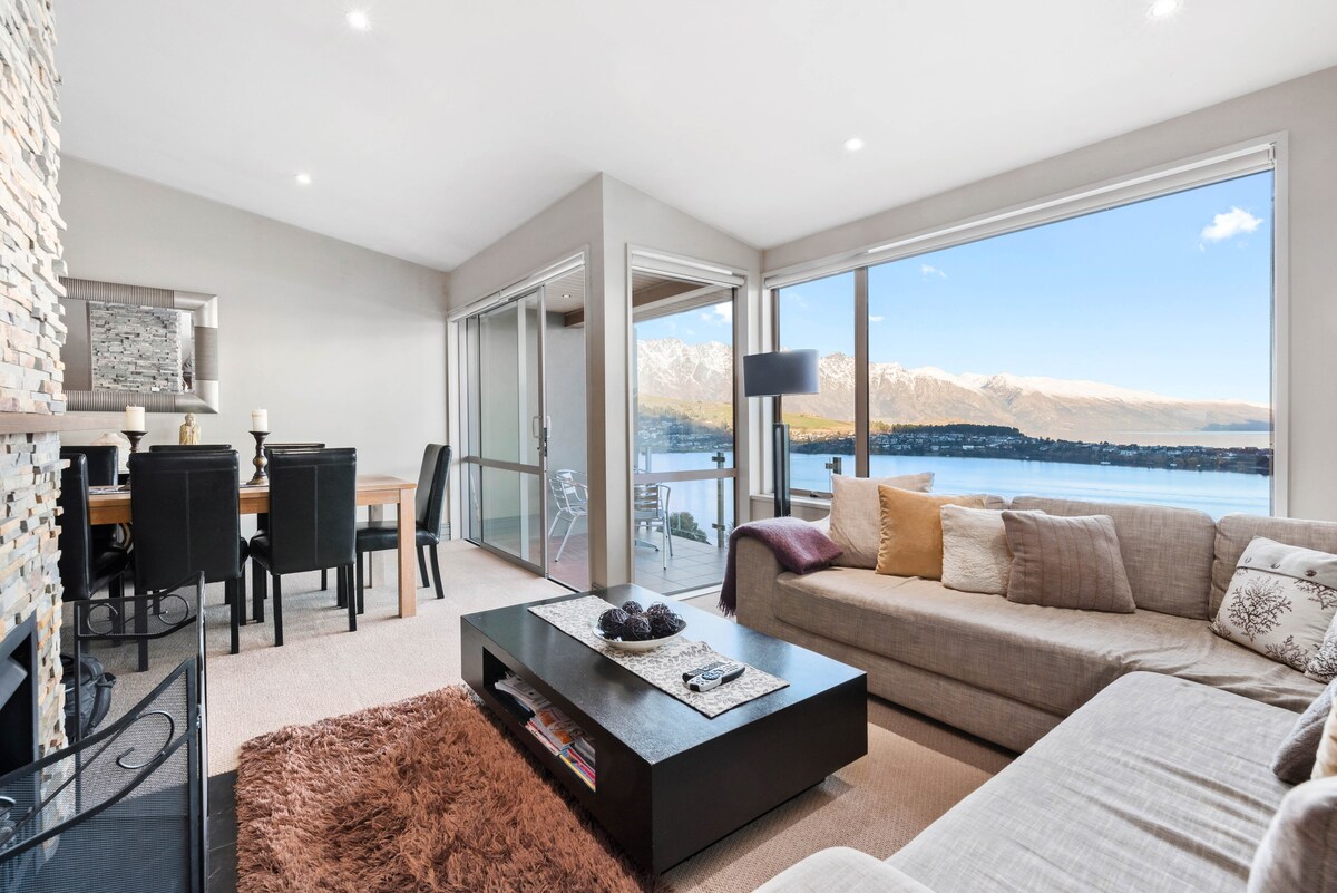 Increíbles vistas al lago y las montañas de Queenstown. Aparcamiento privado en la calle para 2 coches. Cocina completa. Zonas exteriores privadas. A 5-7 minutos a pie de la ciudad. Grandes puestas de sol. Vista perfecta para los fuegos artificiales de Nochevieja y el festival de invierno. Apple TV Chromecast Netflix Privado pero cerca de la ciudad. Barbacoa Wifi ilimitado. Fogón eléctrico Mantas eléctricas Calefacción por suelo radiante en invierno Secador de botas de esquí y snowboard