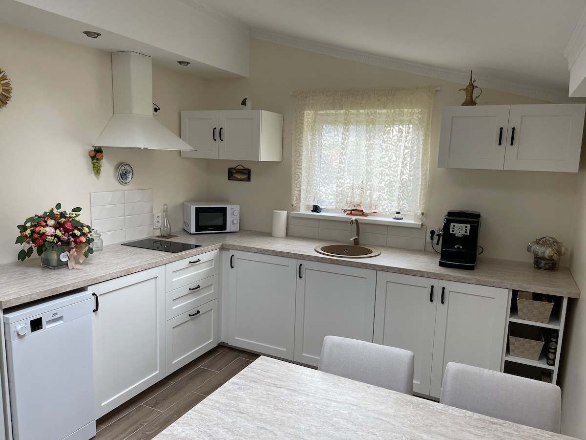 🌊 A cozy and stylish cabin just 250 m from the sea – perfect for a romantic escape or a family retreat! Surrounded by nature trails, fish restaurants, and a national park. Private yard with grill for relaxing dinners. Unwind in the sauna and hot tub under the stars (both for €80). A peaceful place to breathe fresh air, enjoy nature, and recharge. Tranquil setting – no parties allowed. Book your dream coastal getaway today and experience the rest you truly deserve!