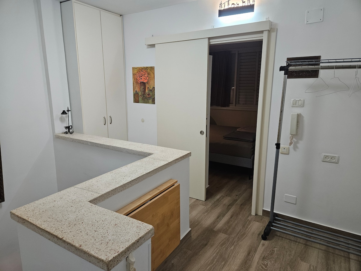Oasis Moderno y Silencioso en el Centro de Tel Aviv Relájate en este nuevo apartamento de diseño (4ª planta, ascensor). Elegancia y confort en una ubicación central pero muy tranquila. Espacios: Salón luminoso (sofá cama), cocina equipada, dormitorio acogedor, baño moderno y balconcino. Seguridad: Refugio antimisiles (Mamak) situado en la misma planta. Ideal para quienes buscan un hogar cuidado al detalle para disfrutar de la ciudad con total relax.