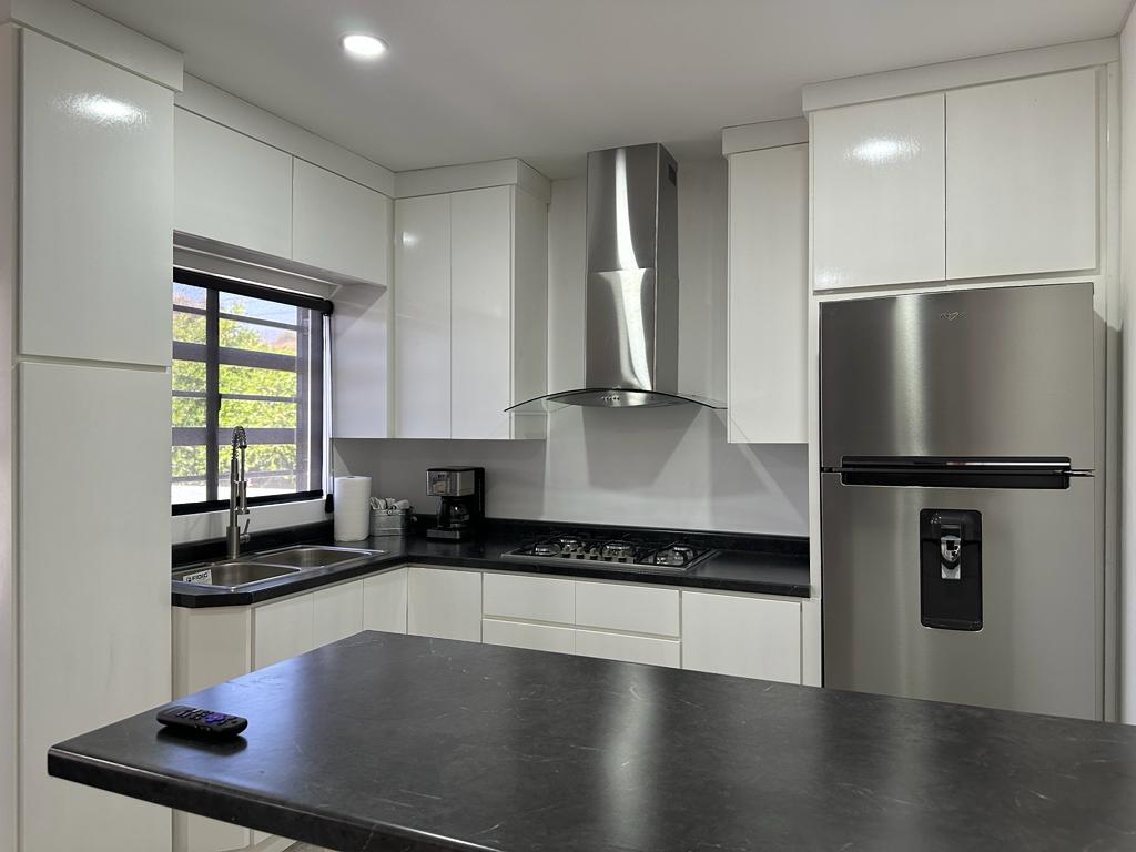 Cómoda habitación, tipo estudio. Con entrada y baño independiente. Equipada con smart tv, cable, internet, microondas, cafetera, servibar, ventilador de techo y aire acondicionado frio. Muy cerca encontraran un centro comercial, con cines, varios resturantes, mercado, boutiques, un poco de todo. Lavadora y secadora compartida. Tener en cunta que lavadora y secadora esta disponible para reservas de mas de cinco dias.