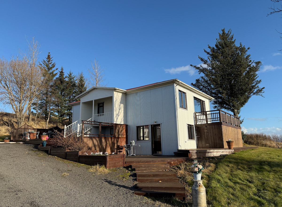 Relájate con toda la familia o amigos en este lugar tranquilo para hospedarte. En el centro del Círculo Dorado. Apartamento en nuestra granja familiar. Perfecto para dos huéspedes, pero 4 personas pueden alojarse en el departamento. Dormitorio pequeño y acogedor para dos personas. Cocina de equipo completo. Sala de estar con sofá cama donde pueden dormir dos huéspedes. Baño con ducha. Lavadora y secadora. Es muy sencillo viajar por toda la parte sur de Islandia desde nuestra ubicación.