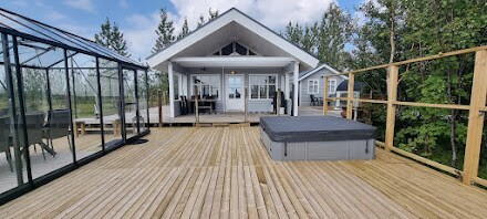 Amplia y acogedora cabaña en el Círculo Dorado. Capacidad para 4 personas en camas y colchones en el piso. Si buscas un buen lugar para alojarte cerca de las atracciones turísticas más grandes del sur de Islandia, como Geysir, Gullfoss y Þingvellir, este es el lugar ideal para ti. Tenemos todo lo que buscas, camas cómodas, amplia sala de estar, cocina totalmente equipada, TV de pantalla plana, Apple TV incl. Netflix, wifi rápido, jacuzzi, SAUNA, chimenea al aire libre, barbacoa, calefacción central y vistas increíbles al sur.