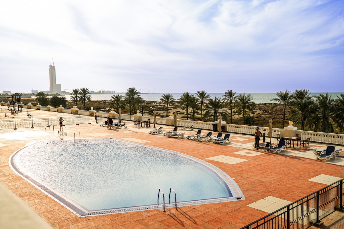 Alquiler más bajo de apartamento de 2 dormitorios con piscina en la playa, centro comercial AL HAMRA
