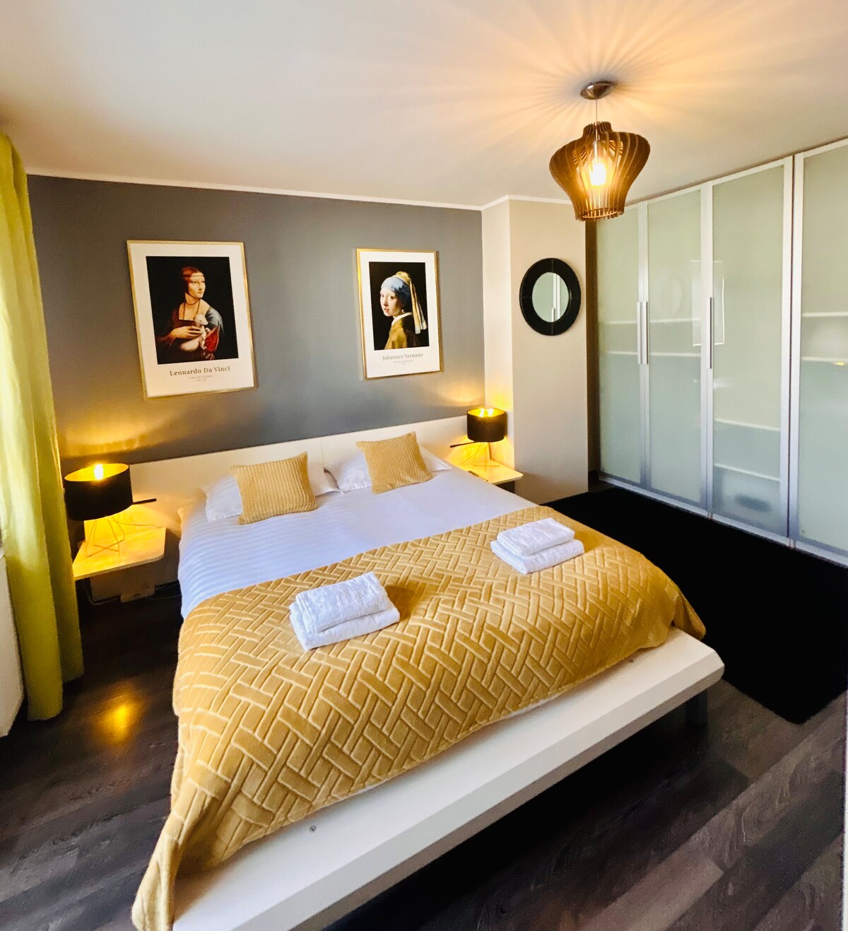 Stylish apartment in a new building offering accommodation for up to four guests. The apartment will offer you a peaceful stay while providing quick and convenient access to the city center. Most of the main attractions in the Historic City Center, including many shops and restaurants, are less than 15 minutes away. The apartment comes with all of the amenities you may need for a comfortable stay including free parking, WiFi, cable TV, and a fully equipped kitchen.