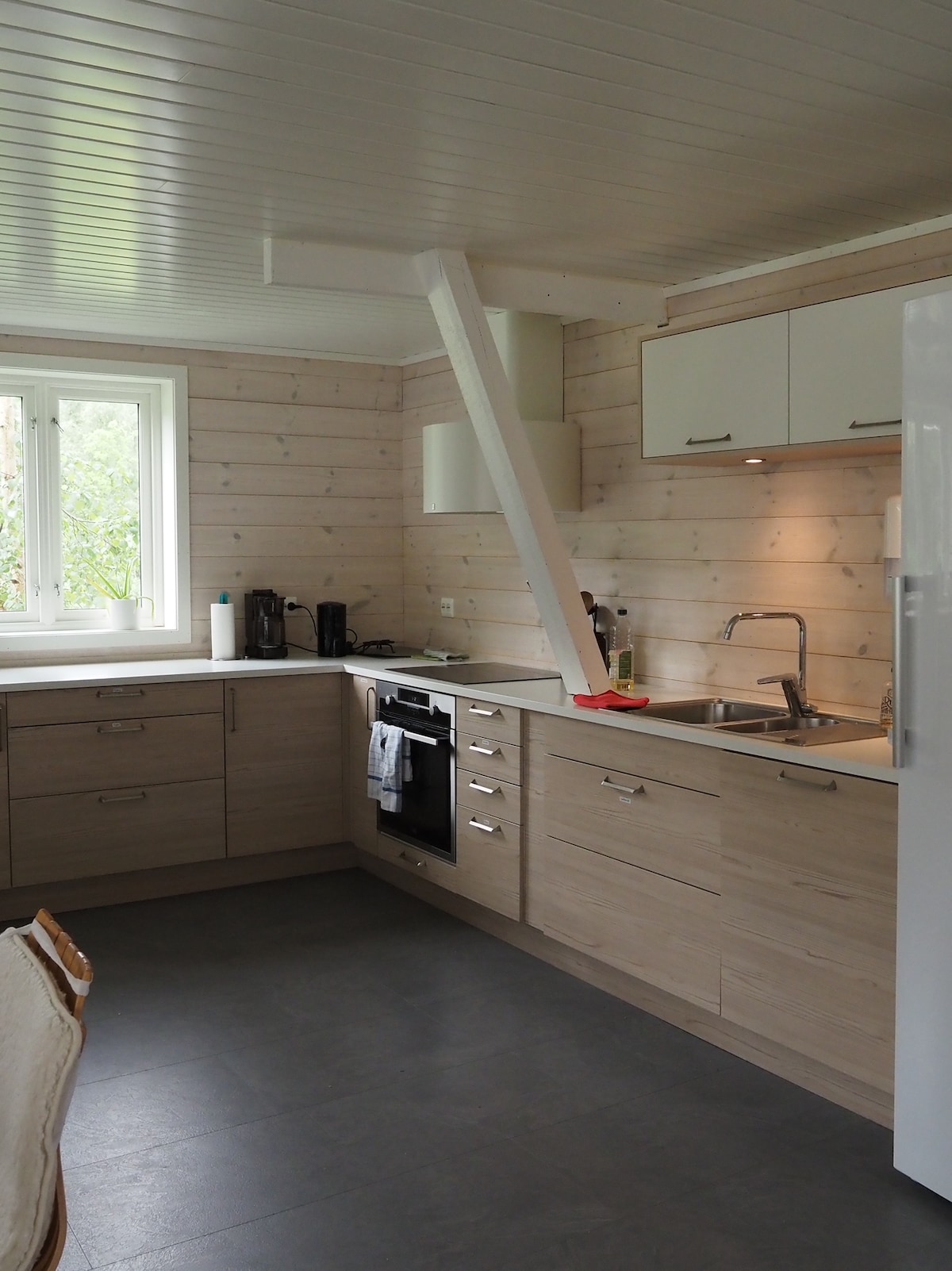 Escucha a los pájaros cantar en el bosque afuera mientras te sientas en la gran ventana bebiendo tu café por la mañana y estudiando las montañas del valle del ron. La pequeña casa está situada en el centro, pero sin ser molestada, a las afueras de un bosque en el centro de Isfjorden. Pasa el esquí fuera de la puerta y camina por algunas de las montañas más famosas de Romsdalen. O siéntate en el sofá y mira Romsdalseggen que caminas a primera hora del día. La pequeña casa tiene una cocina de apartamento pequeña y funcionalmente equipada (nevera y dos fogones) en la que puedes cocinar platos sencillos.