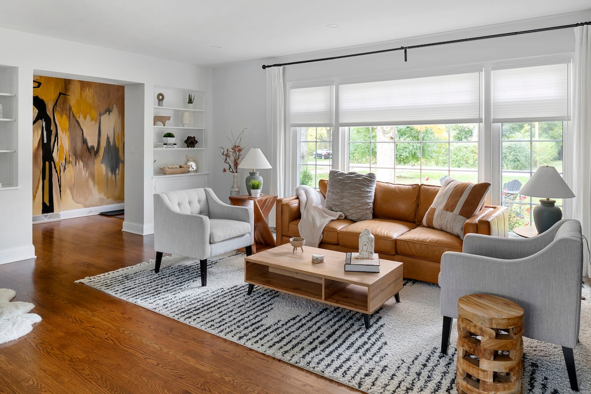 Bienvenido a nuestra sofisticada casa estilo rancho, ubicada en el sereno y céntrico barrio de Northbrook en Chicago. Esta casa cuidadosamente diseñada ofrece un refugio tranquilo en un barrio transitable con tiendas y restaurantes cercanos. Con su decoración elegante, muebles cómodos y comodidades modernas, la casa ofrece un refugio de relajación. Ya sea que estés disfrutando de una taza de café en el patio privado o explorando la zona, esta casa ofrece el escenario perfecto para una experiencia de vacaciones inolvidable.