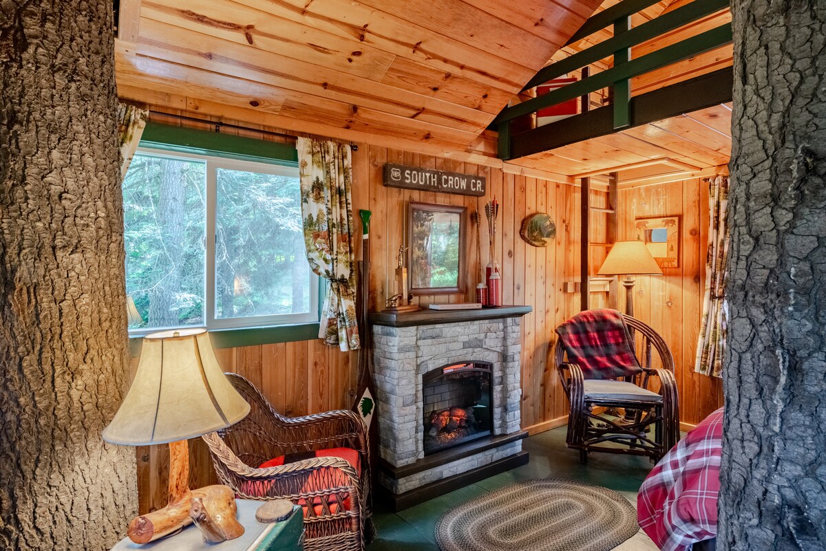 Disfruta de esta experiencia única situada en los pinos ubicados justo fuera de Spokane. Con un acogedor espacio de 400 pies cuadrados, con libros, juegos y una chimenea de gas, así como una cocina pequeña con todo lo que necesitas para preparar una comida para dos. El dormitorio tiene una cama tamaño king y una puerta de acordeón de 10 pies que se abre completamente a la terraza exterior con un jacuzzi esperándote. Nota: Si bien es privada, la casa del árbol está en una propiedad con otras dos estructuras ocupadas.