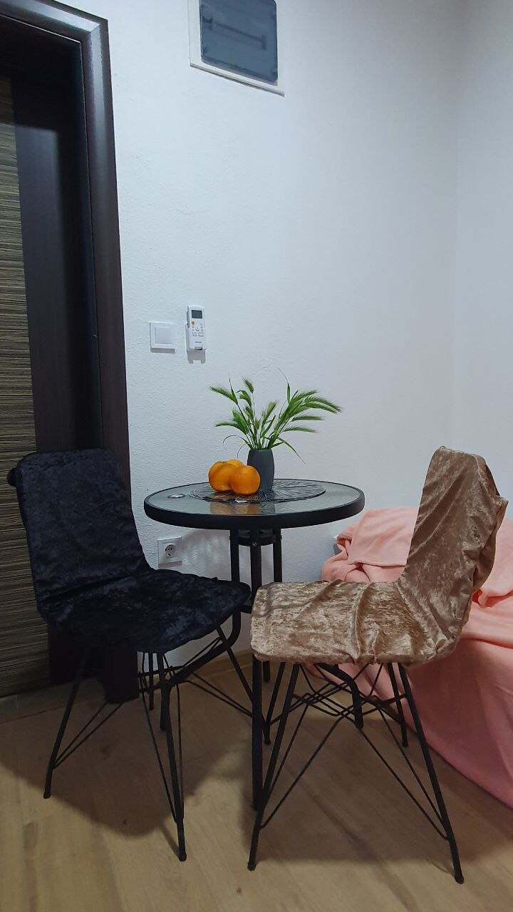 Tiny studio on a 2nd floor facing North, Susanj mountain. The apartment is in a two-story building 600 meters from the Šušanj beach near IDEA & AROMA supermarkets. Has an access to a shared balcony/terrace with a garden table and a 2 chair set. The apartment has modern new appliances, Samsung inverter air conditioners, inverter washing machine on the floor, microwave, marble kitchen countertop & granite sink, bathroom bidet shower & infrared heater.