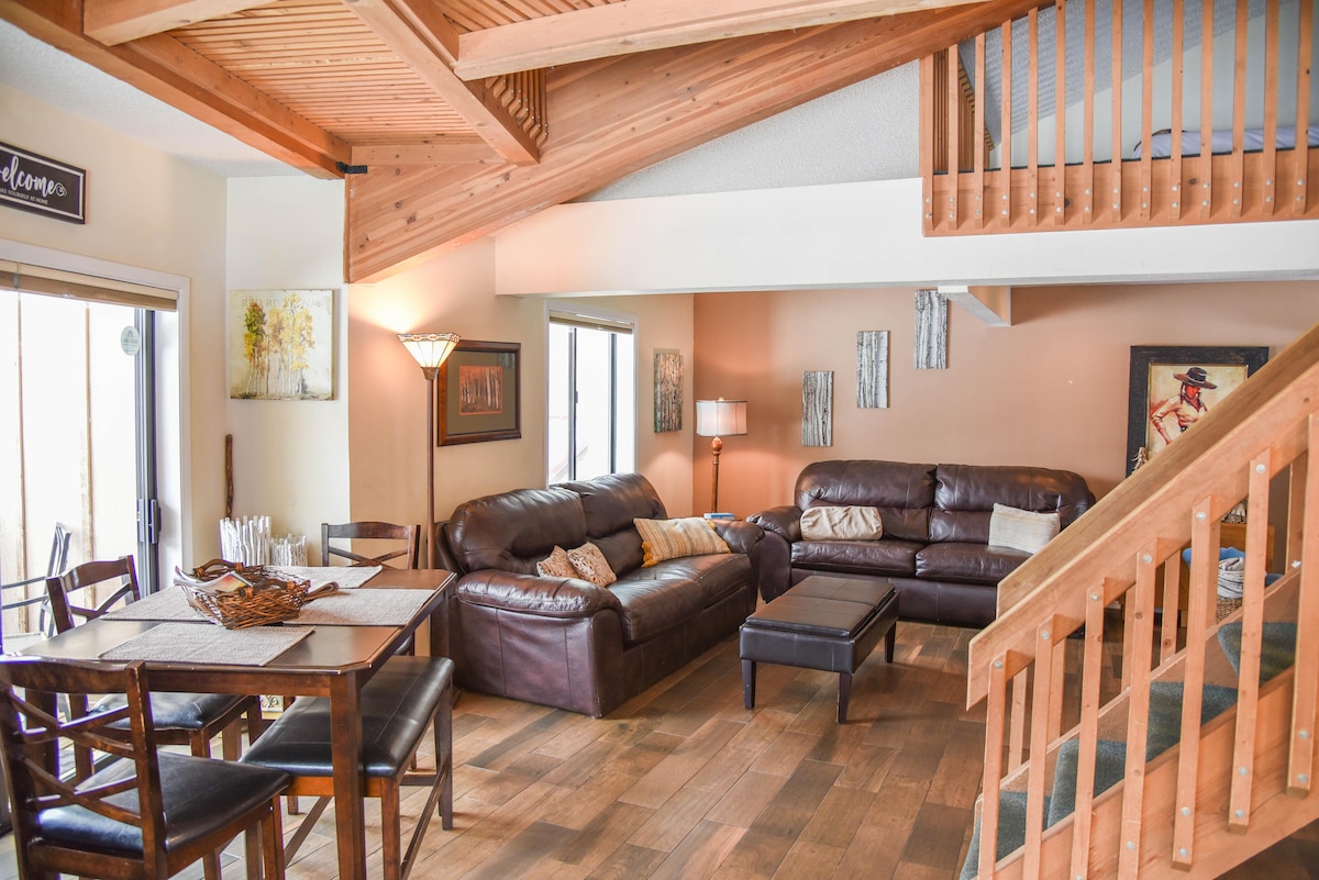 Este apartamento está a un paso de la base de la montaña y ofrece excelentes servicios que incluyen servicio de transporte, estacionamiento cubierto, espacio para dormir hasta 5 personas y muy cerca de muchos restaurantes y entretenimiento. También hay disponibles lavadora y secadora comunitarias, wifi gratuito, juegos de mesa, televisores inteligentes y un acogedor patio aislado. NOTA: a partir del 1 de noviembre de 2024, ya no se permite quemar leña en ninguna parte del edificio Mountain Spirit.