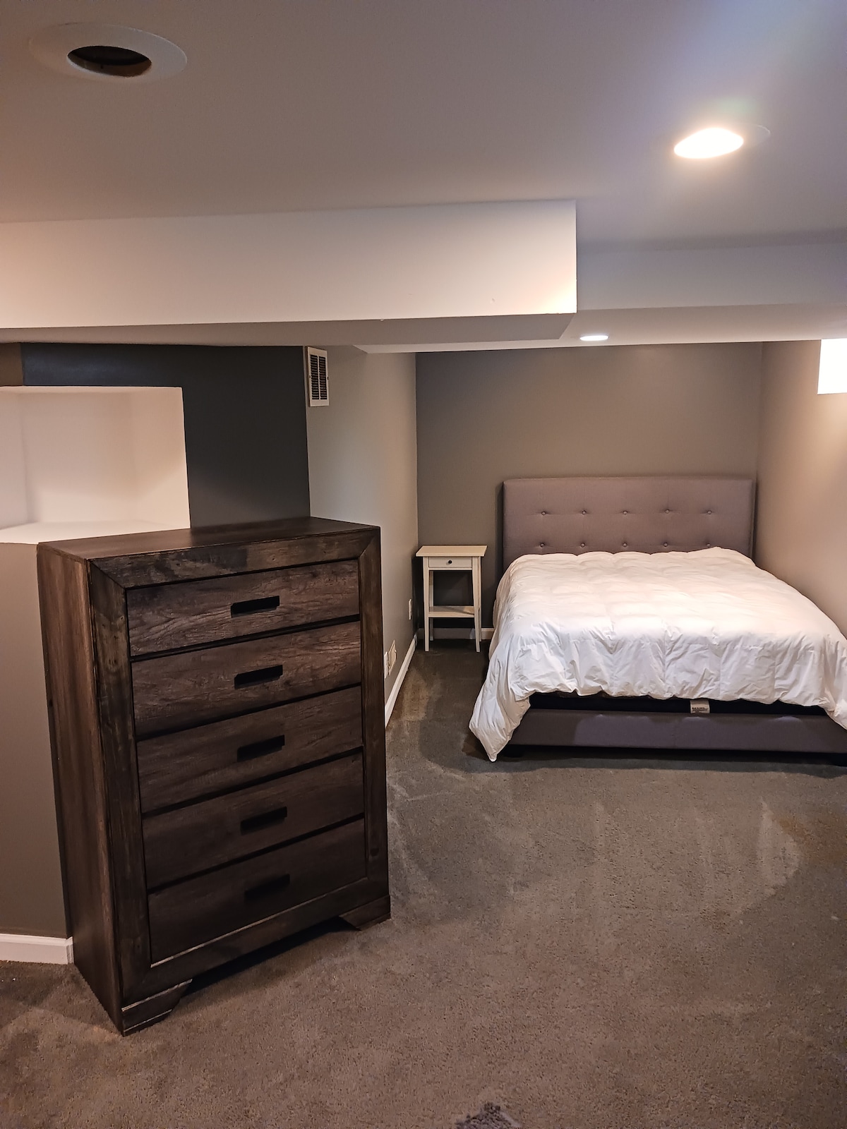 Nuevo apartamento tipo estudio con entrada independiente. Cocina totalmente amueblada, cama tamaño queen nueva, todos los muebles nuevos, incluida la zona de escritorio, wifi, mucho espacio de almacenamiento, nevera nueva, estufa, microondas, TV de 42 pulgadas y lavavajillas. La unidad incluye lavadora y secadora propias y tiene una hermosa vista al lago en frente. Ubicado cerca de cines, bolos, restaurantes, centros comerciales, tiendas de comestibles, gran parque recreativo estatal, esquí y convenientemente cerca de aeropuertos. Baño dentro de la unidad con 2 sillas reclinables.