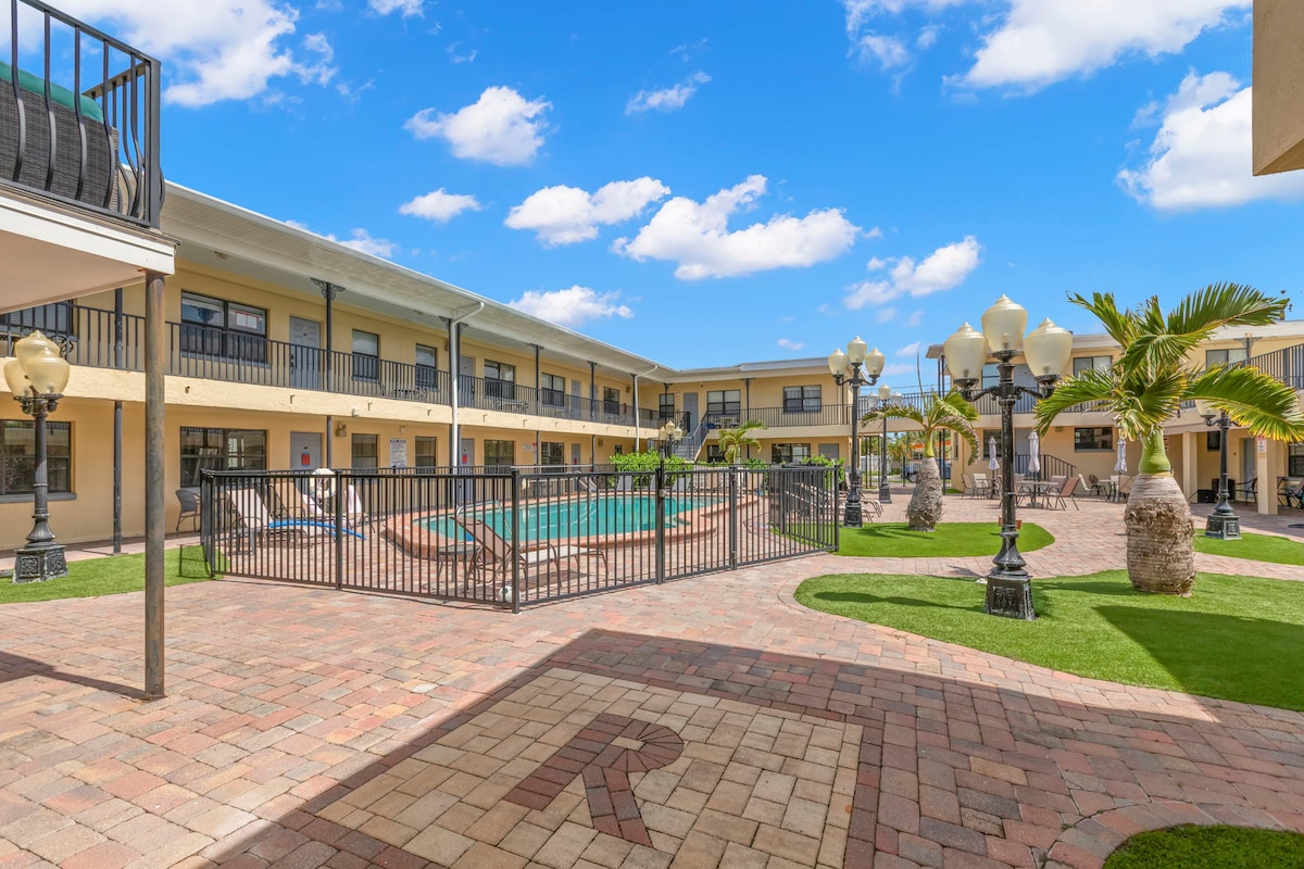 Este monoambiente totalmente renovado está justo en Gulf Blvd y, al otro lado de la calle, ¡tenés la playa! Hay restaurantes excelentes a lo largo de Gulf Blvd, a 30 minutos de St. Petersburg o Clearwater y a 45 minutos del aeropuerto de Tampa. Tenés un lugar de estacionamiento exclusivo y fácil acceso a la playa. Incluye: Cama tamaño queen Televisor Wi-Fi Cocina totalmente equipada: Keurig, ollas y sartenes, vajilla, cubiertos, etc. (todo nuevo) Lavadora/secarropas en el edificio (se aceptan pagos con tarjeta de crédito) Pileta climatizada frente a la puerta de tu alojamiento.