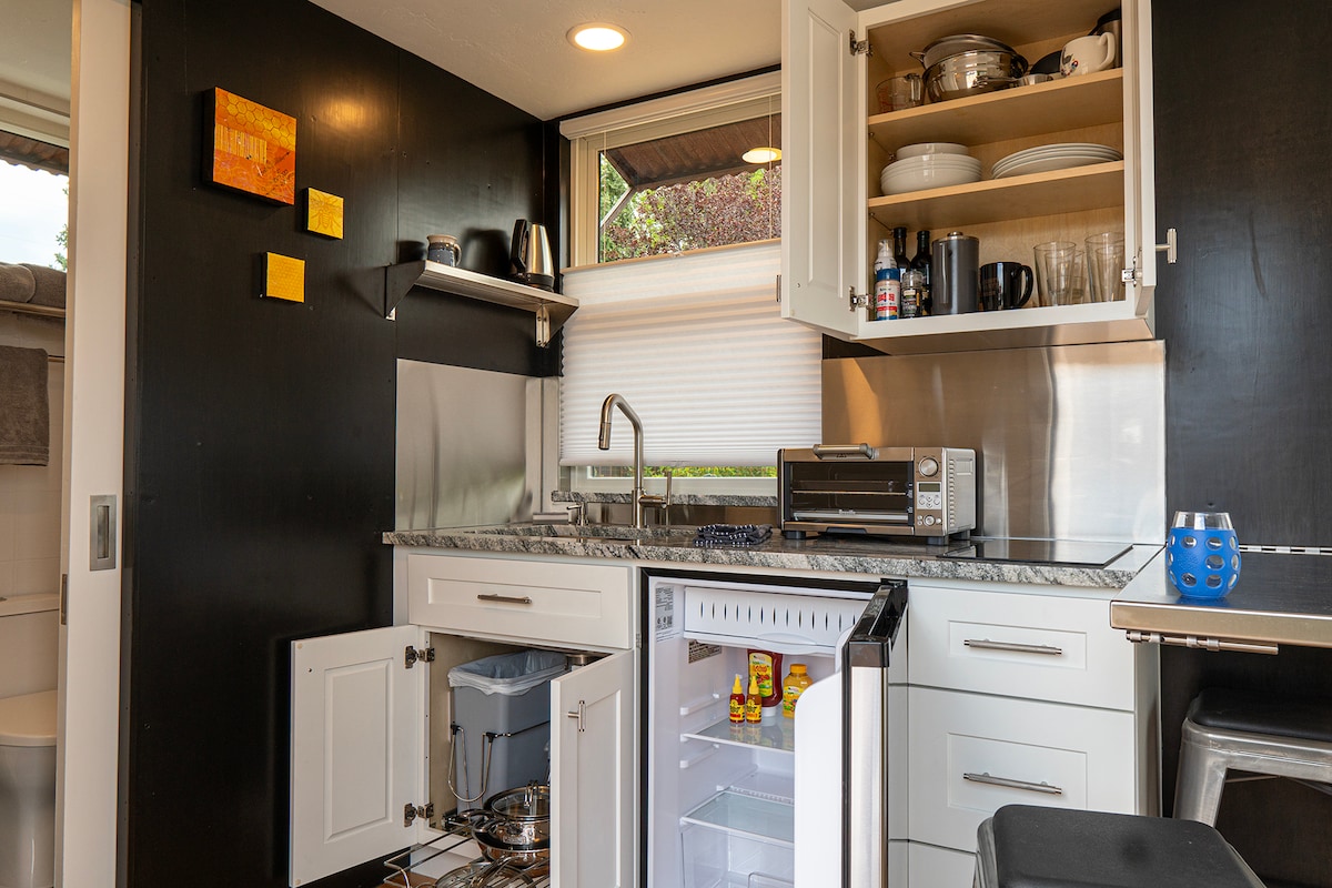 Vuelve a conectar con la naturaleza con esta escapada privada inolvidable a solo 6 minutos del centro de Grand Junction. Esta acogedora casa pequeña de contenedor de envío de 8'x20' se encuentra en tres acres con vistas al Gran Valle. El contenedor se encuentra entre nuestro pequeño huerto y un espacio abierto que estamos devolviendo a la vegetación nativa. ¡Disfruta de unas vistas increíbles del valle, los acantilados Book Cliffs y la meseta Grand Mesa y de la abundante observación de aves!