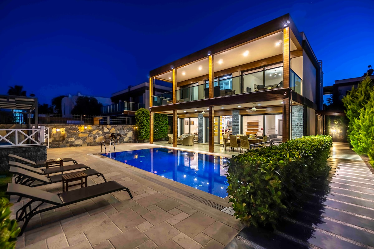 Situada en Bodrum/Yalikavak, la villa tiene un toque moderno junto con lujosas comodidades. A veinte minutos del puerto deportivo de Yalikavak, tu alquiler vacacional cuenta con magníficas vistas al mar y un impresionante atardecer. Los cuatro dormitorios tienen ventanales del suelo al techo con vistas a las aguas azules del Mediterráneo. La casa de nueva construcción viene con: wifi de alta velocidad (fibra óptica), aire acondicionado en todas partes, Apple TV, TV de pantalla grande, cafetera Nespresso, cocina totalmente equipada y barbacoa Weber.