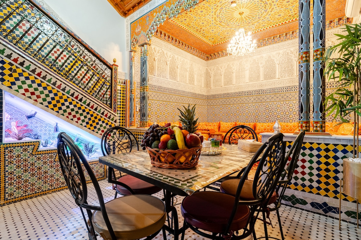 Dar El Hachmia is an authentic hidden gem. It was Hachmia's home (old Berber name). It dates back to the 14th century. It was restored with traditional materials and ancestral techniques, and offer all modern comforts. In the heart of the Medina, peaceful atmosphere, and unique style are its greatest assets. The entire riad is available, with 3 bedrooms with private bathrooms. It includes a refreshing pool in the patio, heated pool on the rooftop and Hammam for an experience of the lifetime.