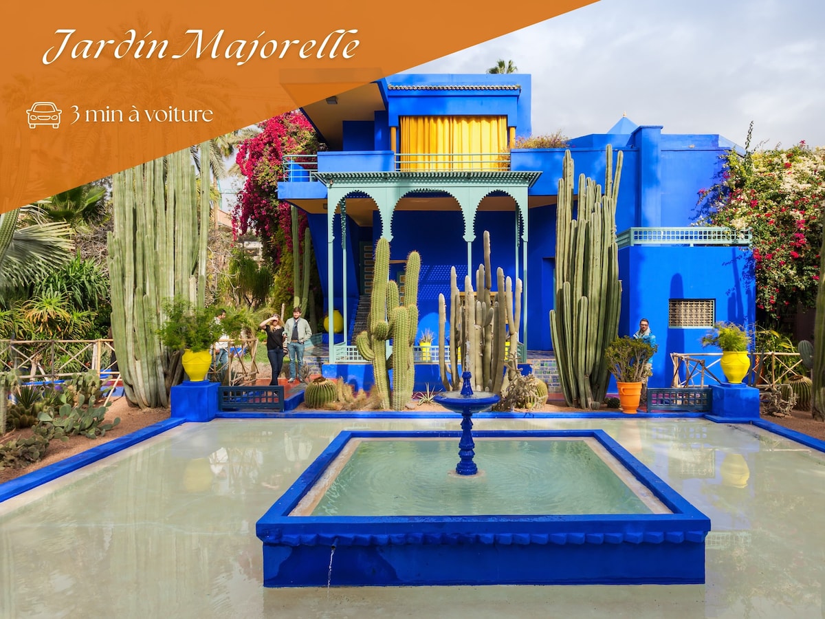 Acomodate en nuestro moderno departamento de 1 dormitorio ubicado en el vibrante corazón de Gueliz. A solo unos pasos de los Jardines Majorelle (700 m), Eden Square (300 m) y a 20 minutos a pie de Jemaa El Fna, este oasis urbano, ubicado en una nueva residencia de alta gama, ofrece comodidad, tranquilidad y bienestar en el corazón de Marrakech. Ubicación: A 3 minutos a pie del centro comercial Carré Eden A 10 minutos a pie de la estación de tren. A 15 minutos en auto del aeropuerto de Marrakech A 25 minutos a pie de la antigua Medina