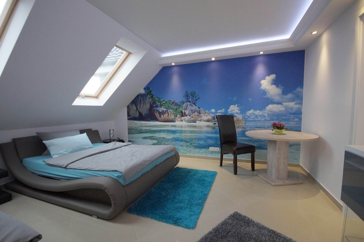 Moderna habitación amueblada de 2 a 3 camas, en particular ambiente. El cuarto tiene: - TV satelital - Samsung LED neuer Flatscreen TV - Fluyendo por todas partes - Calefacción por suelo radiante (ajustable por separado) - Paneles atascados - Iluminación indirecta - 1x cama matrimonial - 1x cama individual