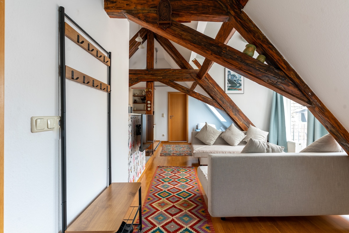 Hermoso apartamento en el ático con entrada independiente en el centro de Maguncia-Gonsenheim, el barrio más popular de Maguncia. Te encantará por las tablas de madera, el gran ambiente de una casa de más de 100 años, la excelente ubicación con restaurantes, tiendas y zonas de ocio a poca distancia. La parada de tranvía más cercana está a dos minutos a pie, por lo que estarás rápidamente en la estación central de tren de Maguncia y desde allí en tren o S-Bahn igualmente rápido en Wiesbaden, Frankfurt, Darmstadt, .... Nuevo: Netflix, DAZN, aplicaciones