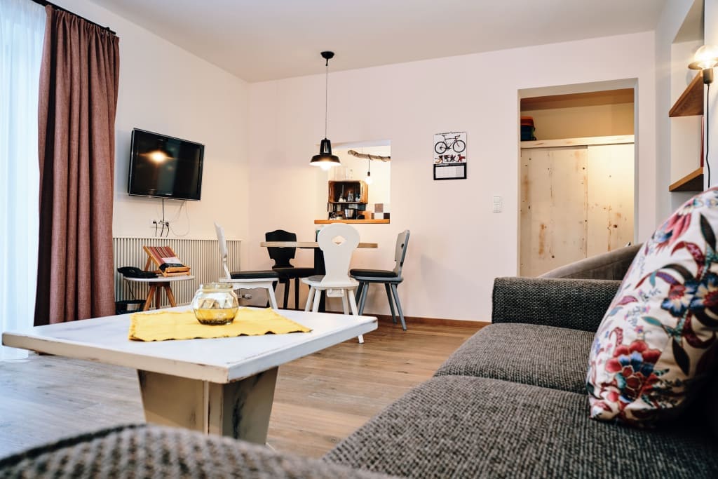 Experience the charm of the Alps in our beautifully appointed apartment, featuring two comfortable sleeping rooms, two modern bathrooms, and a fully equipped kitchen perfect for preparing meals. Step out onto your private balcony to soak in breathtaking mountain views. Stay connected with high-speed WLAN, and enjoy the convenience of a telephone, safe and a hairdryer. With a vintage alpine touch, the apartment also includes a refrigerator, microwave, cookware, and cleaning equipment for your co