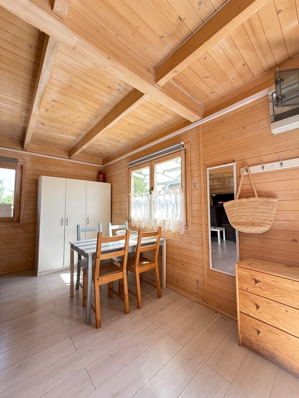 El lugar para la casa de 70 m2 consta de una cocina conectada a la sala de estar y el baño en la planta baja y dos dormitorios arriba. La cabaña tiene una gran mesa y barbacoa y más de 200 metros cuadrados de área recreativa. La propiedad tiene un estacionamiento seguro y vallado (2 plazas de aparcamiento gratuitas para cada cabaña), un lugar para alojarse y descansar para una familia.