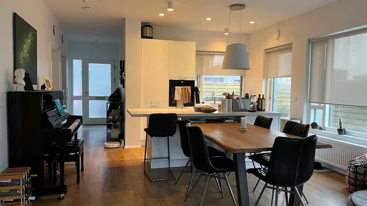 ¡NUEVO anuncio! Disfrutá de un departamento espacioso y moderno, perfecto para familias o grupos pequeños. El dormitorio principal funciona como un estudio privado con su propio baño, vestidor, cocina pequeña y acceso directo al balcón. • Capacidad para 6 personas: 2 camas dobles + 2 sofás cama individuales • A 30 minutos a pie del centro de Reikiavik • Impresionante vista al mar ✔ Ideal para familias y grupos ✔ Wifi, TV inteligente y estacionamiento gratuito ✔ Autoregistro ✔ Estacionamiento pago en el sótano, gratuito para nuestros huéspedes