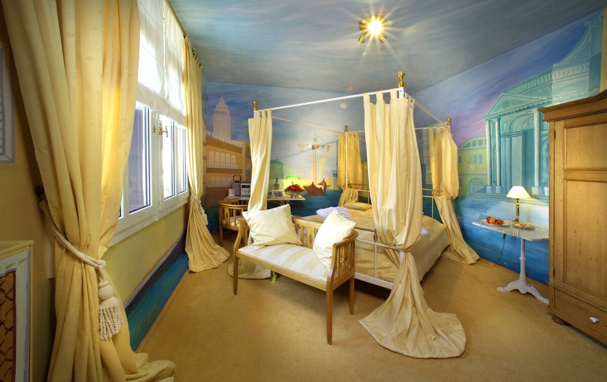 Nuestra suite Thousand and One Nights es un sueño árabe de blanco. Los detalles cuidadosamente seleccionados y los patrones orientales te invitan a viajar al mundo de los héroes de los cuentos de hadas Aladino, Alí Babá y Simbad. El espacioso diseño con espacio para dormir, vestirse, vivir y trabajar te da suficiente espacio para desarrollar tu imaginación. ¡Diviértete explorando nuestra suite y (mil y una)una noche inolvidable!