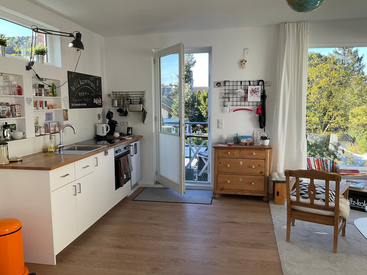 Eine besondere Unterkunft im Loftcharakter. Ein mit viel Liebe zum Detail gestaltetes Loft mit Doppelbett&Schlafcouch für 3 -4 Personen. Ein großzügiges Badezimmer mit Badewanne/Dusche. Offener Raum mit Küche zur Selbstversorgung. Privater Außenbereich mit Tisch und Gartencouch. Trotz geteilten Grundstück mit einem historischen Haus komplette Unabhängigkeit und Privatsphäre. Für Naturliebhaber ein perfekter Rückzugsort am Waldrand. 8 min zum Baldeneysee. ÖV (5 min zum Bus/14 min S-Bahn)