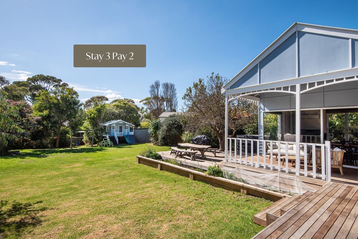 Ideal para que las familias y amigos se relajen y se relajen. * 2 pisos - 3 dormitorios - 2 baños - Suite principal arriba * Playa: 4 minutos a pie. * Penguin Parade: 7 minutos en coche. * Tiendas y restaurantes: 5 minutos en auto. * Wifi de alta velocidad gratuito (NBN). * Toda la ropa de cama incluida: las camas están listas para ti. * Reserva ahora para garantizar tu escapada a Phillip Island * ¡Guardanos en tus favoritos! :)