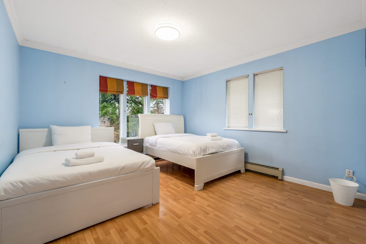 Recién amueblado con un aspecto minimalista moderno. Ubicada en un vecindario amigable, esta casa adosada de 1200 pies cuadrados tiene 2 patios en la azotea, 3 dormitorios con camas tamaño queen, 2 baños y una cocina totalmente equipada. ¡Si buscas un alojamiento céntrico en todas las ubicaciones (Burnaby, Downtown y Richmond), este es tu alojamiento! Convenientemente ubicado cerca de restaurantes, licorería y tienda de comestibles. A 2 minutos a pie del parque, a 10-15 minutos a pie de la estación de tren aéreo y la parada de autobús a solo unos pasos.