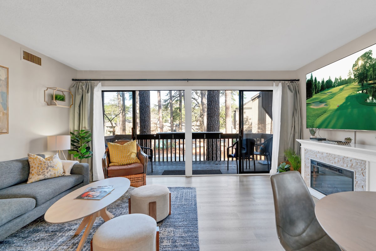 This newly renovated first-floor condo is perfect for your Pinehurst golf getaway. With 2 bedrooms, 2 full baths, and 4 beds, it’s designed for comfort and convenience. Enjoy mornings on the back patio overlooking Pinehurst's Course #5, and unwind in the evening with an impressive 85" flat-screen TV.